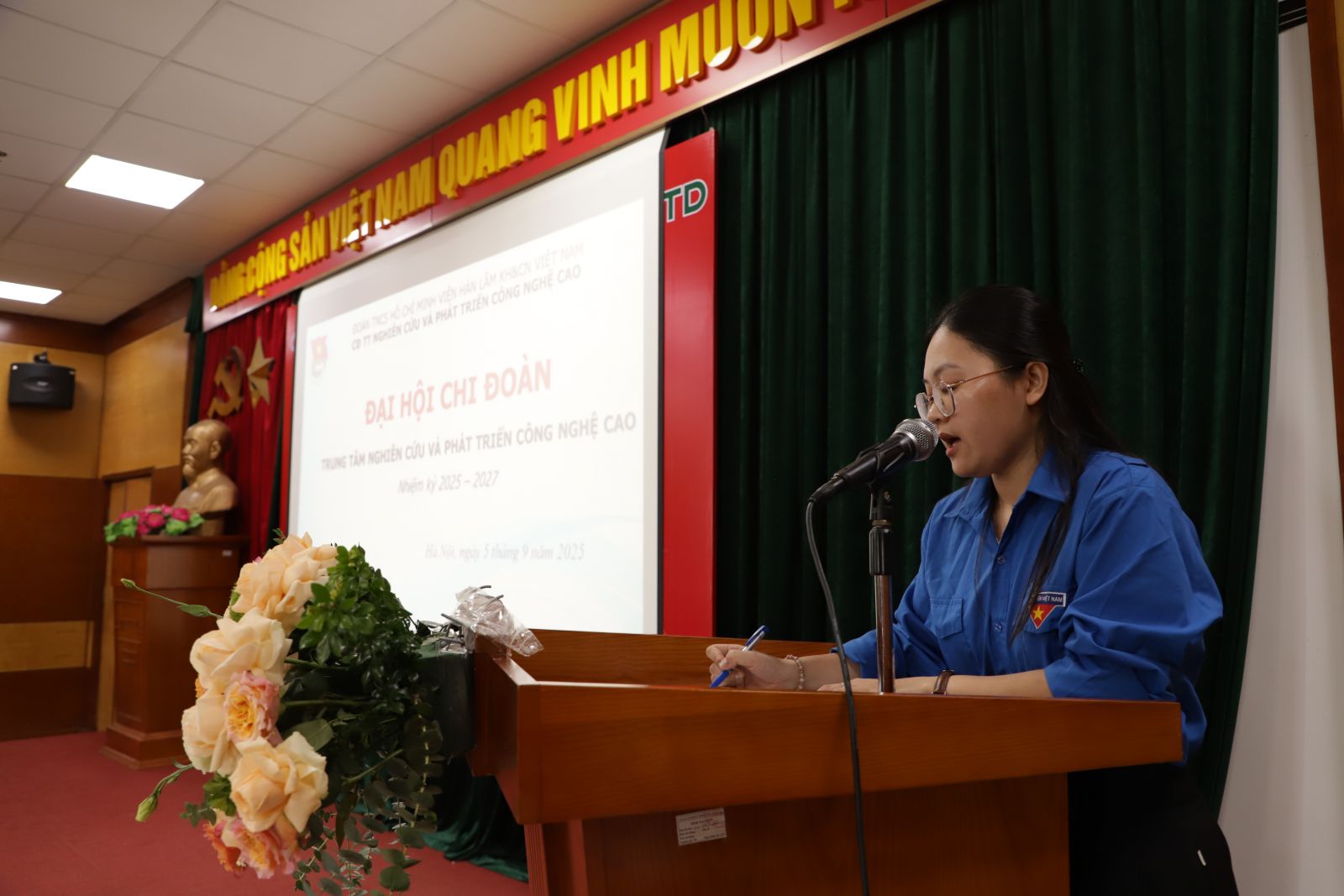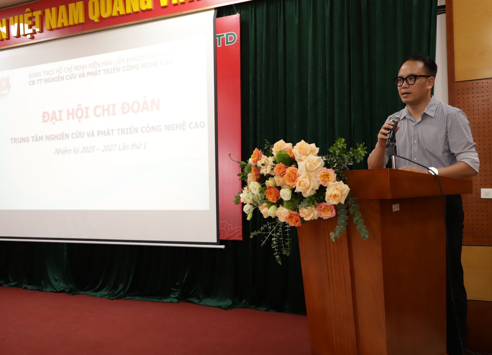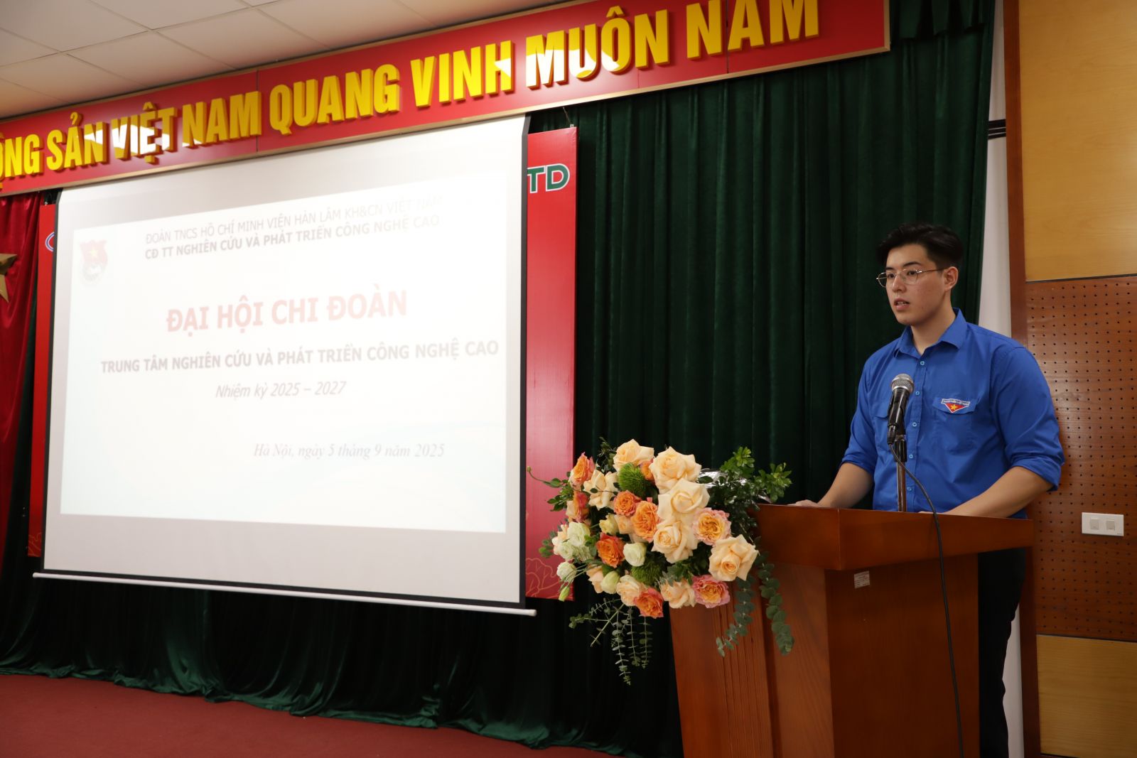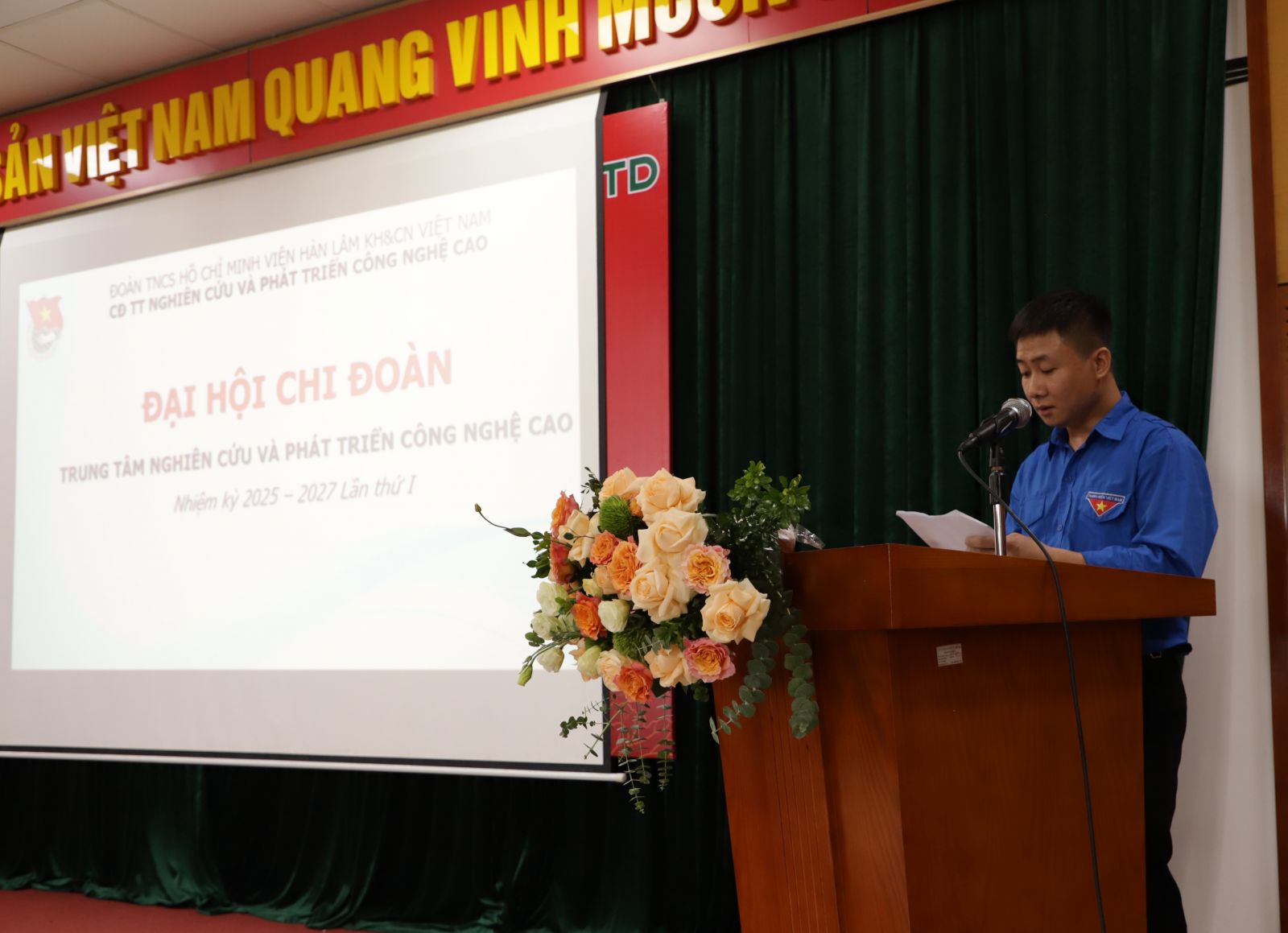 Tại Đại hội, đồng chí Bùi Quốc Khánh báo cáo kết quả công tác Đoàn và phong trào Thanh niên Chi đoàn CHTD nhiệm kỳ 2024 - 2025 và phương hướng nhiệm vụ nhiệm kỳ 2025-2027. Theo báo cáo, Chi đoàn CHTD được hợp nhất từ Chi đoàn Trung tâm Nghiên cứu và Phát triển công nghệ cao và Chi đoàn Trung tâm Tin học và Tính toán theo Quyết định số 28-QĐ/ĐTNVHL-VP ngày 01/4/2025 của Ban thường vụ Đoàn Viện Hàn lâm. Hiện nay Chi đoàn có 65 đoàn viên thanh niên. 100 % số đoàn viên có trình độ đại học và trên đại học. Sau khi hợp nhất, Ban Chấp hành lâm thời của Chi đoàn được chỉ định theo Quyết định 29-QĐ/ĐTNVHL-VP ngày 01/4/2025 của Ban thường vụ Đoàn Viện Hàn lâm KHCNVN, gồm 05 đồng chí: Bùi Quốc Khánh là Bí thư Chi đoàn, Lưu Hải Nhi là Phó bí thư Chi đoàn, 03 Ủy viên là Lê Ngân Hà, Tạ Thanh Giang và Hoàng Nam Khánh.