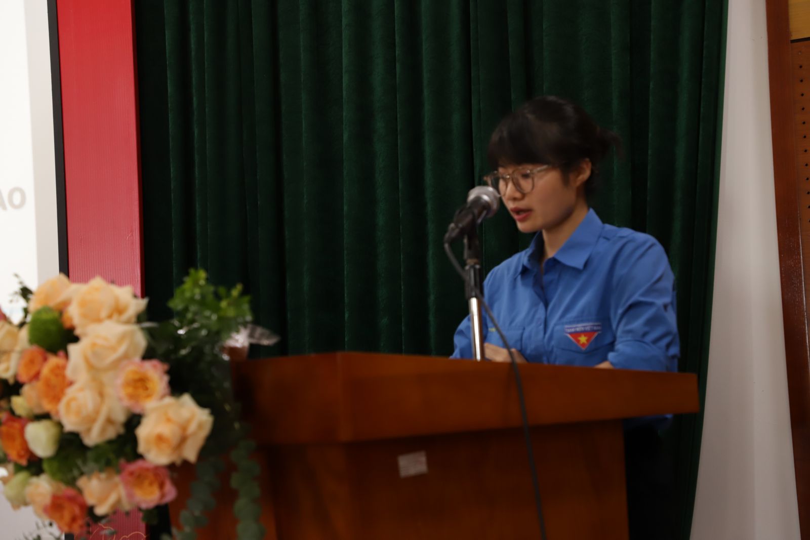 Đồng chí Trần Thị Quỳnh Trang trình bày bản dự thảo Nghị quyết Đại hội Đoàn TNCS Hồ Chí Minh CHTD