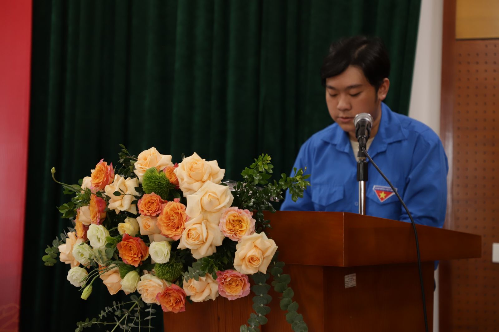 Đồng chí Bùi Quốc Khánh báo cáo kết quả công tác Đoàn và phong trào Thanh niên Chi đoàn Trung tâm Nghiên cứu và Phát triển công nghệ cao nhiệm kỳ 2024-2025