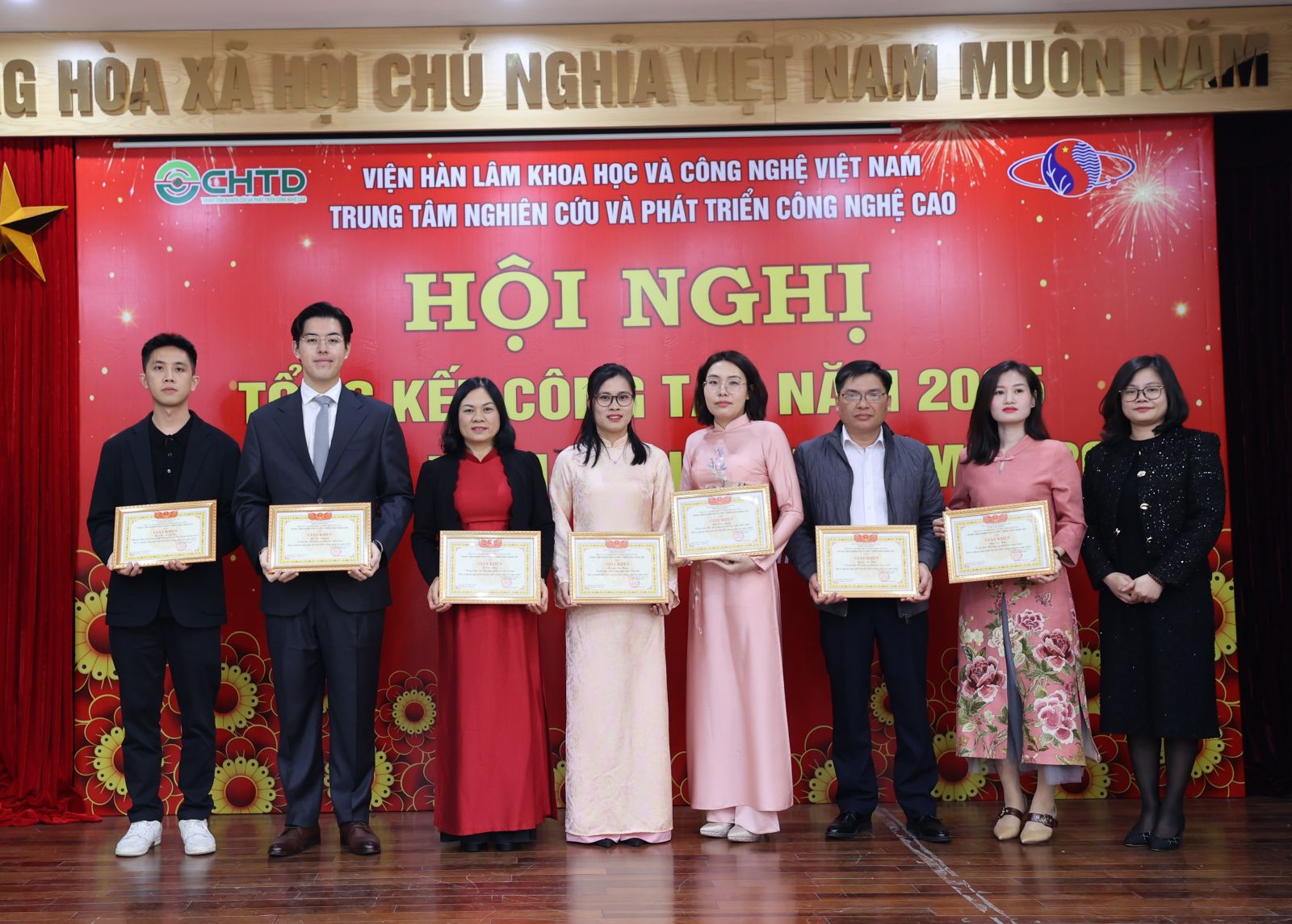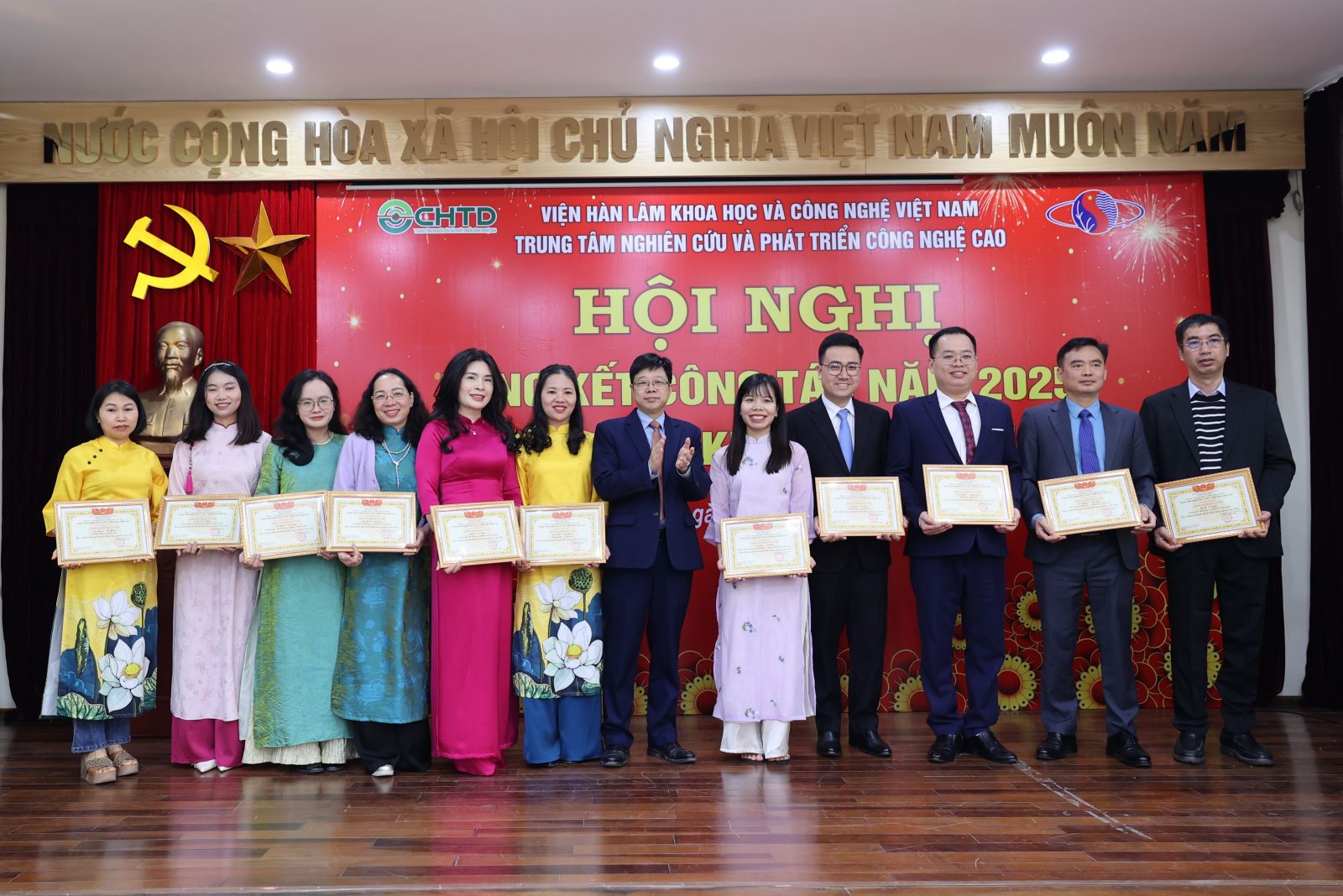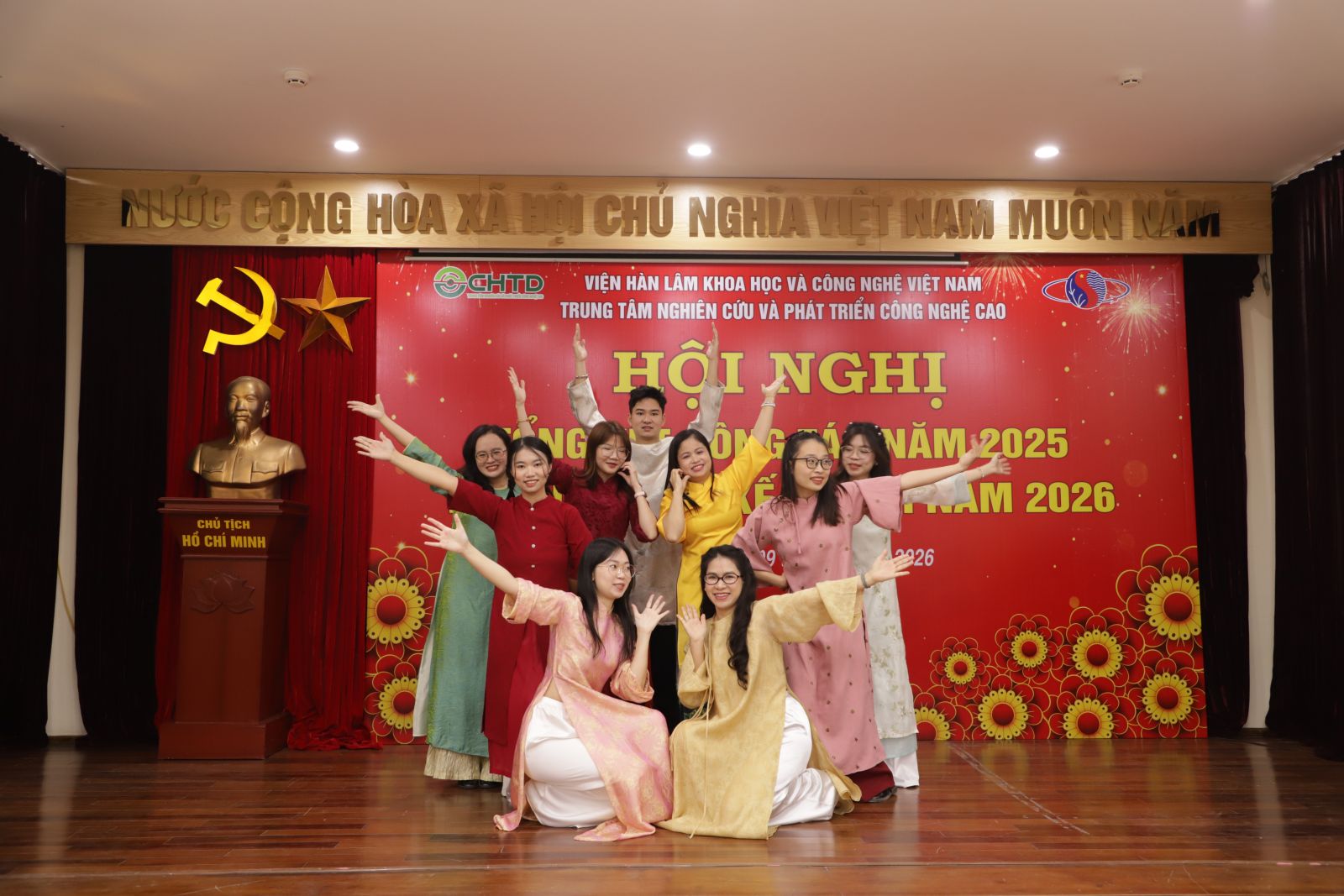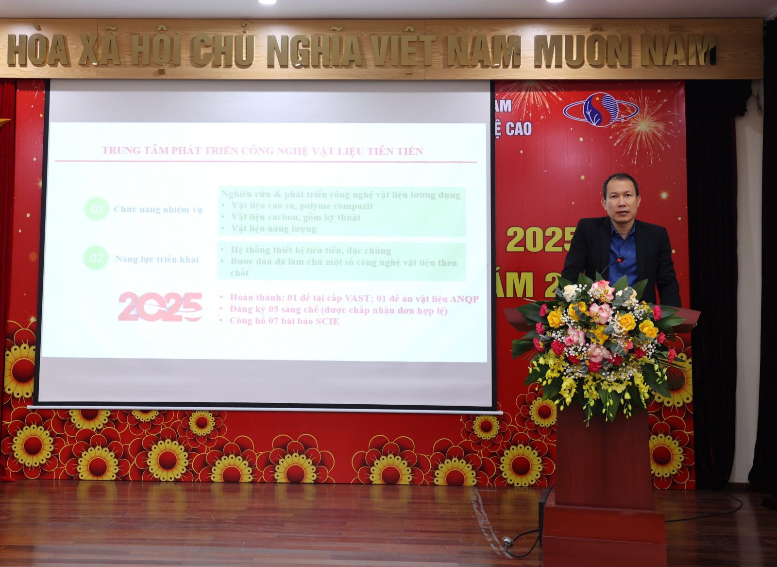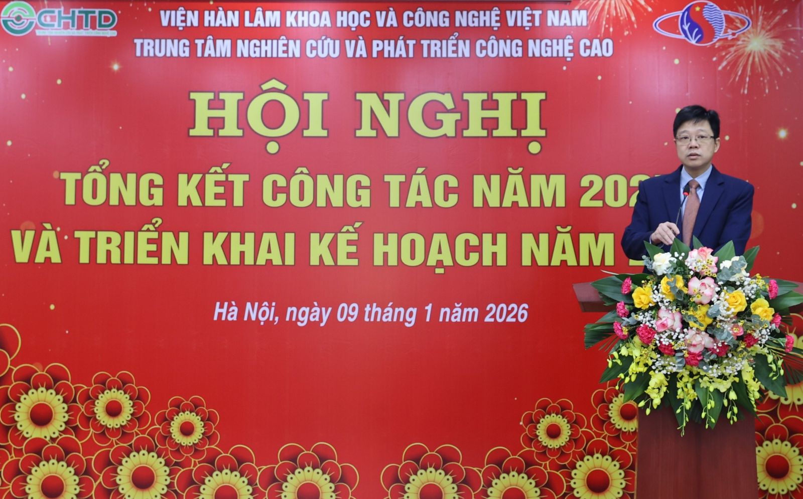 Ngày 09/01/2026, Trung tâm Nghiên cứu và Phát triển công nghệ cao (Trung tâm) đã tổ chức Hội nghị tổng kết công tác năm 2025, triển khai kế hoạch năm 2026. PGS. TS. Nguyễn Tiến Đạt – Bí thư Đảng ủy, Tổng Giám đốc Trung tâm tham dự và chủ trì Hội nghị. Tham dự Hội nghị còn có các đồng chí Phó Tổng Giám đốc: TS. Phạm Duy Súy, PGS. TS. Hoàng Lê Tuấn Anh, TS. Phan Ngọc Hồng, ThS. Phạm Thanh Mai, ThS. Nguyễn Thanh Tâm; TS. Nguyễn Văn Thao – Chủ tịch Hội đồng khoa học Trung tâm; TS. Bùi Quang Minh – Phó Giám đốc Quỹ Phát triển Khoa học và Công nghệ; TS. Nguyễn Hoàng Dương – Phó Trưởng Ban Ứng dụng và Triển khai công nghệ cùng toàn thể cán bộ, viên chức và người lao động Trung tâm.